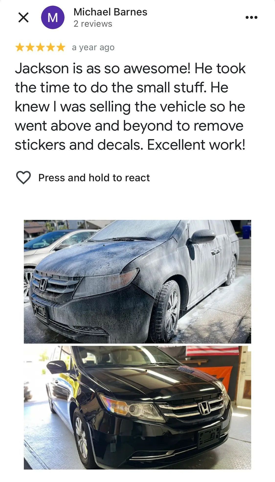 Jackson lives and breathes cars. With an uncanny eye for every curve and crevice, he’s committed to flawless workmanship and the persistence to get every detail right. First-time clients become lifelong customers because Jackson always goes the extra mile in service.